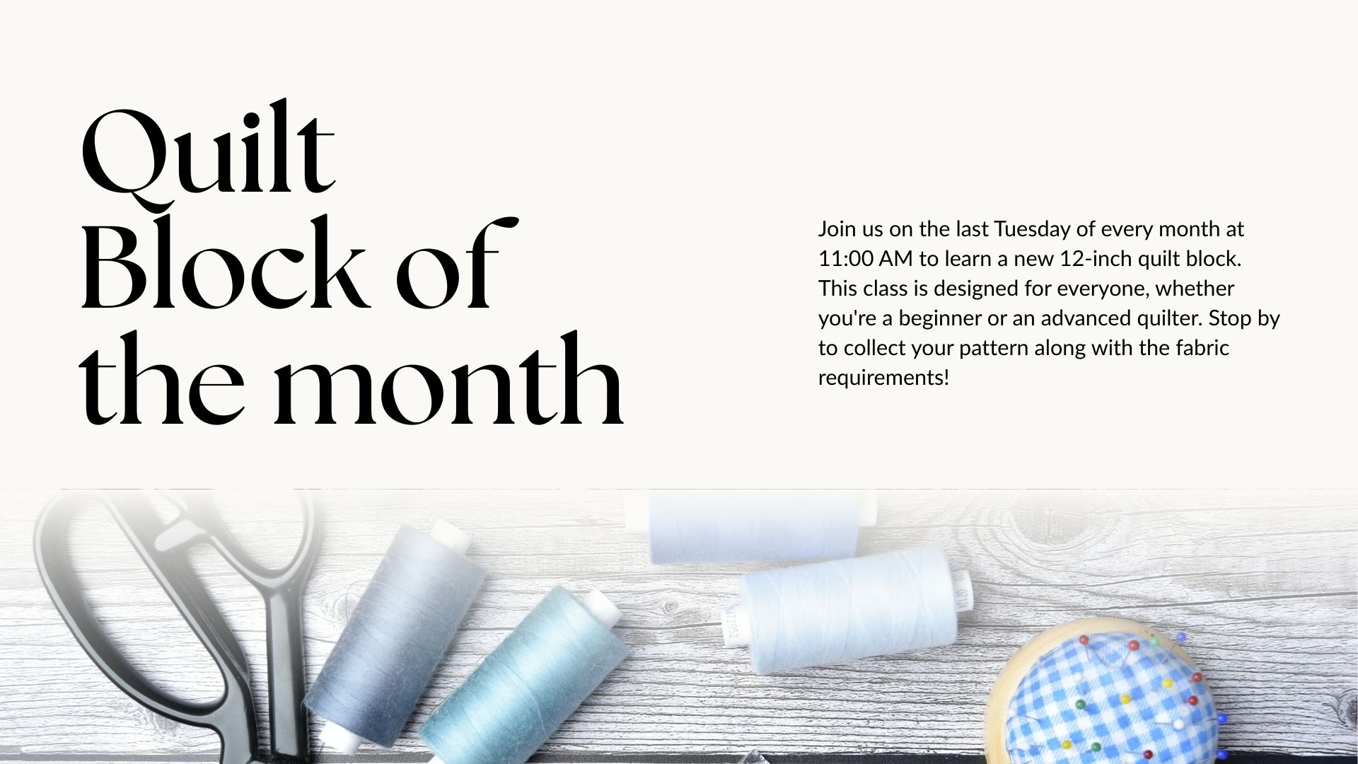 Cooper Community Library Quilt block of the monthJoin us each month to learn a new 12- inch quilt block, with a different design featured each month. This is a fun hands on series perfect for beginners and experienced quilters alike. stop by to pick up your fabric requirements before class. Machines and tools are provided. all are welcome, so come stitch, learn and quilt with us!Location: The Cooper Community Branch Library |