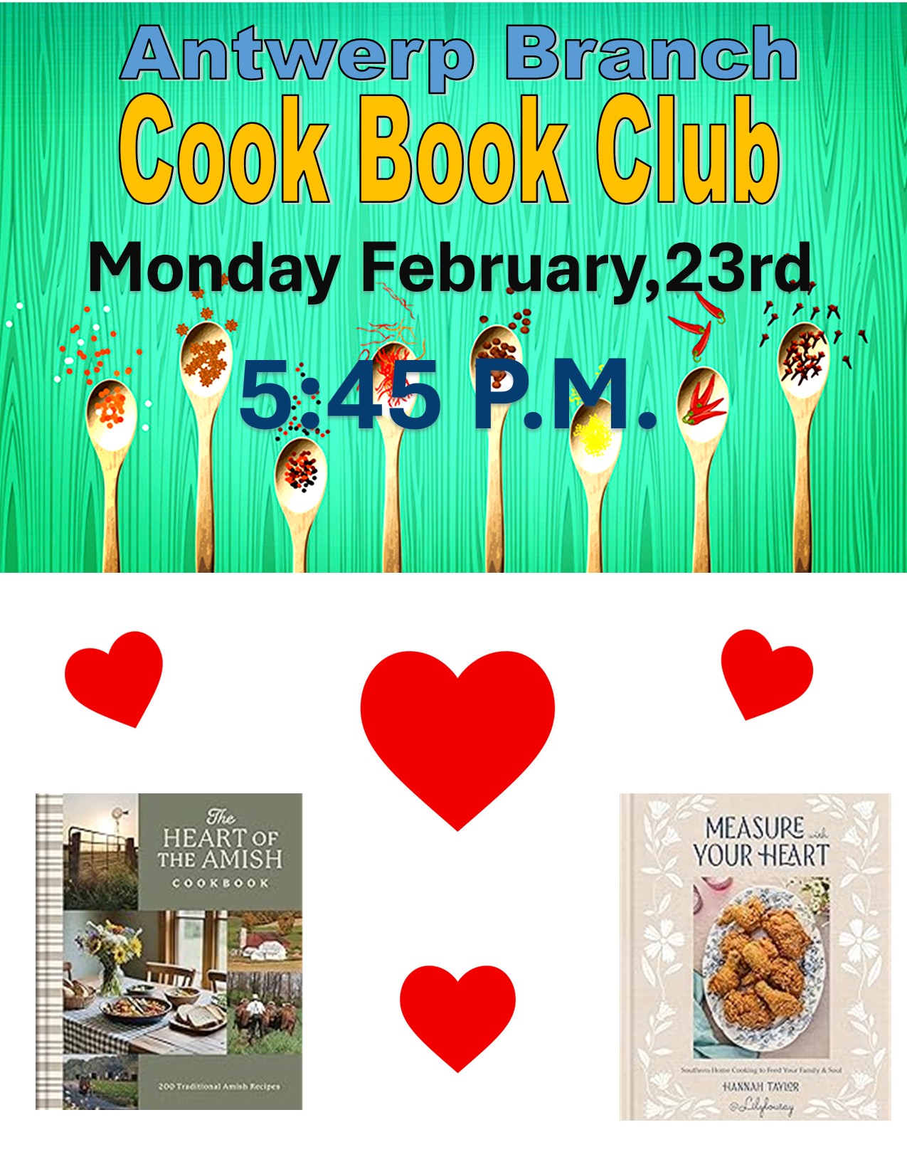 Cooper Community Library Adult Cookbook ClubStop in and check out our cookbook selection and join us with a new recipe. Make a new recipe with one of our cookbooks and bring it in the share and sample all the different treats this monthLocation: The Cooper Community Branch Library |